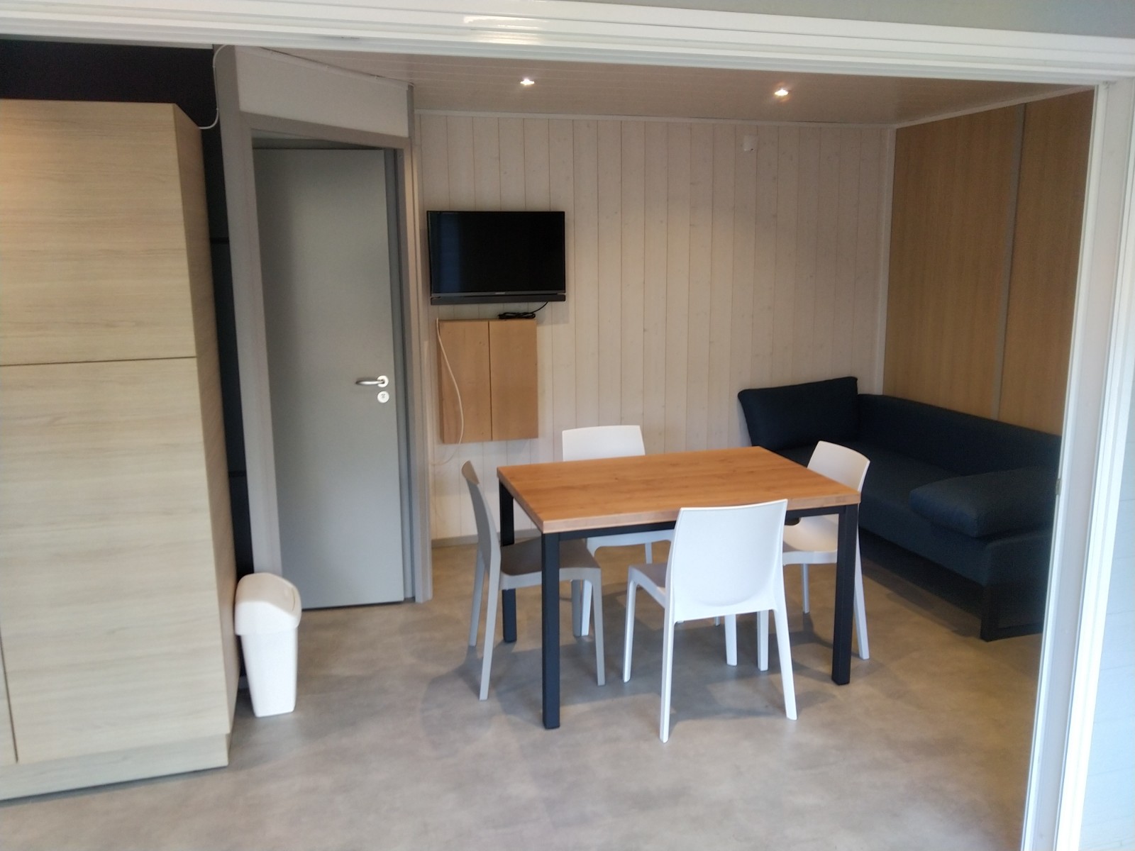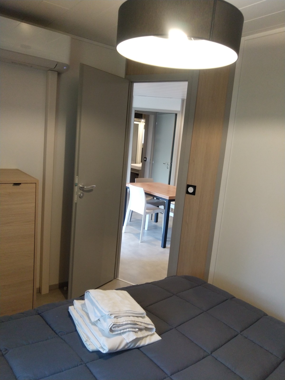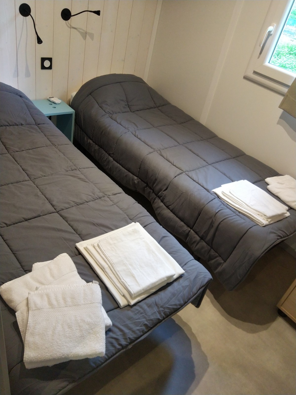 un vaste séjour/cuisine 2 chambres l’une « adulte » spacieuse disposant d’un placard de rangement et d’un lit en 140cm et l’autre plus petite pour les enfants avec 2 lits en 90cm pouvant aussi se rapprocher pour organiser le couchage d’un couple.